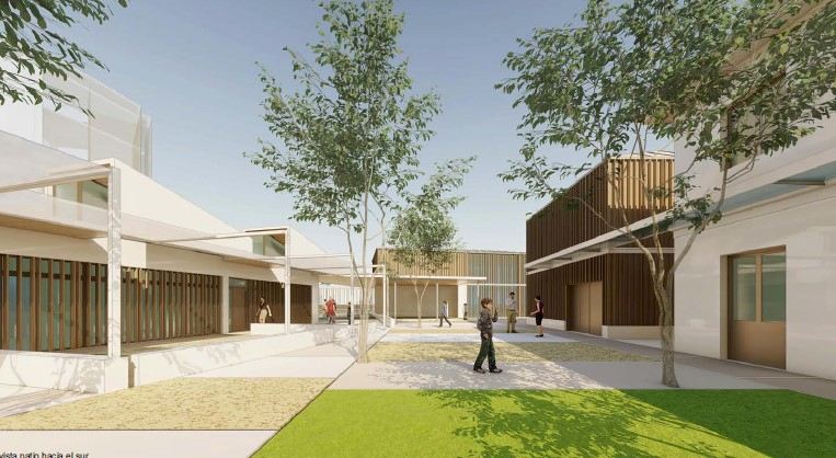 El objetivo de la intervención de rehabilitación es en primera instancia la adecuación de la edificación existente, donde se alojará todo el programa de Primaria, administración y el comedor. Se trata de un edificio que ocupa una posición perimetral en la parcela en que se actúa. El resto de edificación se demolerá para dar paso a dos nuevas: una edificación en el sur de la parcela, donde se sitúa el gimnasio; otra al este, donde se sitúa el programa de Educación Infantil.