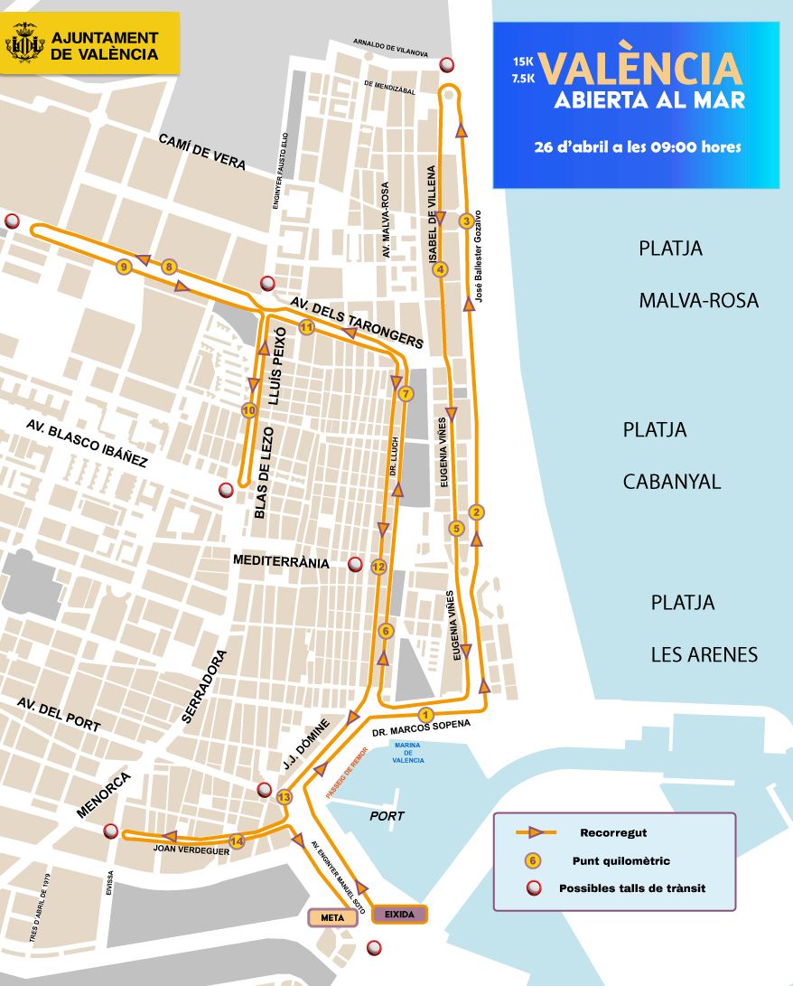 El domingo 26 de abril, la ciudad acogerá la 14ª edición de la 15K València Abierta al Mar y la 6ª edición en formato 7,5K, con cerca de 12.000 participantes.