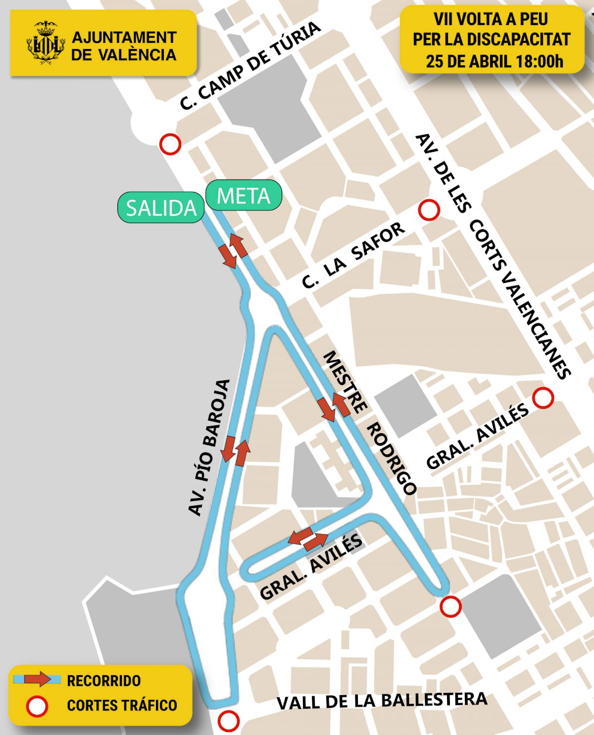 El recorrido discurrirá por avenidas como Mestre Rodrigo, General Avilés y Pío Baroja, con cortes de tráfico previstos desde las 15:00 horas por el montaje de salida y meta, así como restricciones de estacionamiento desde la noche anterior.