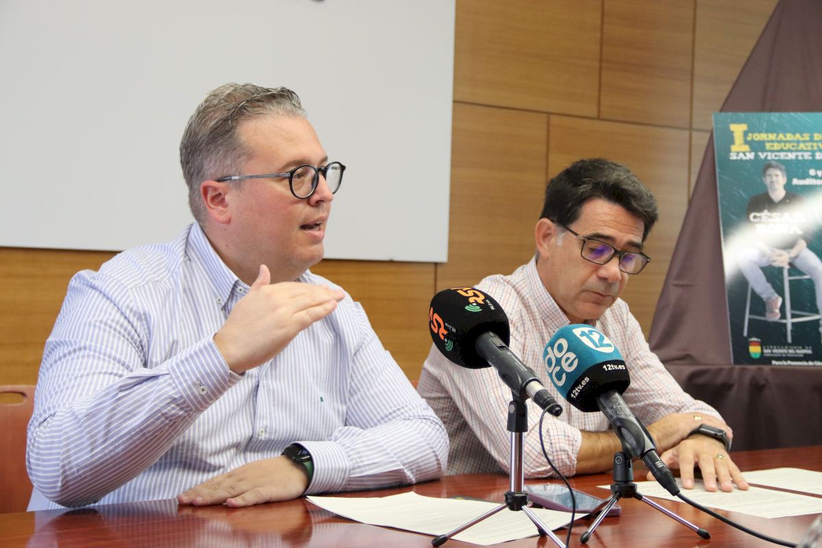 El alcalde, Pachi Pascual, y el concejal de Educación, Santiago Agulló, han presentado esta mañana la programación preparada para este encuentro en el que participarán el profesorado y el equipo directivo de trece centros de Infantil, Primaria y Secundaria de San Vicente del Raspeig.