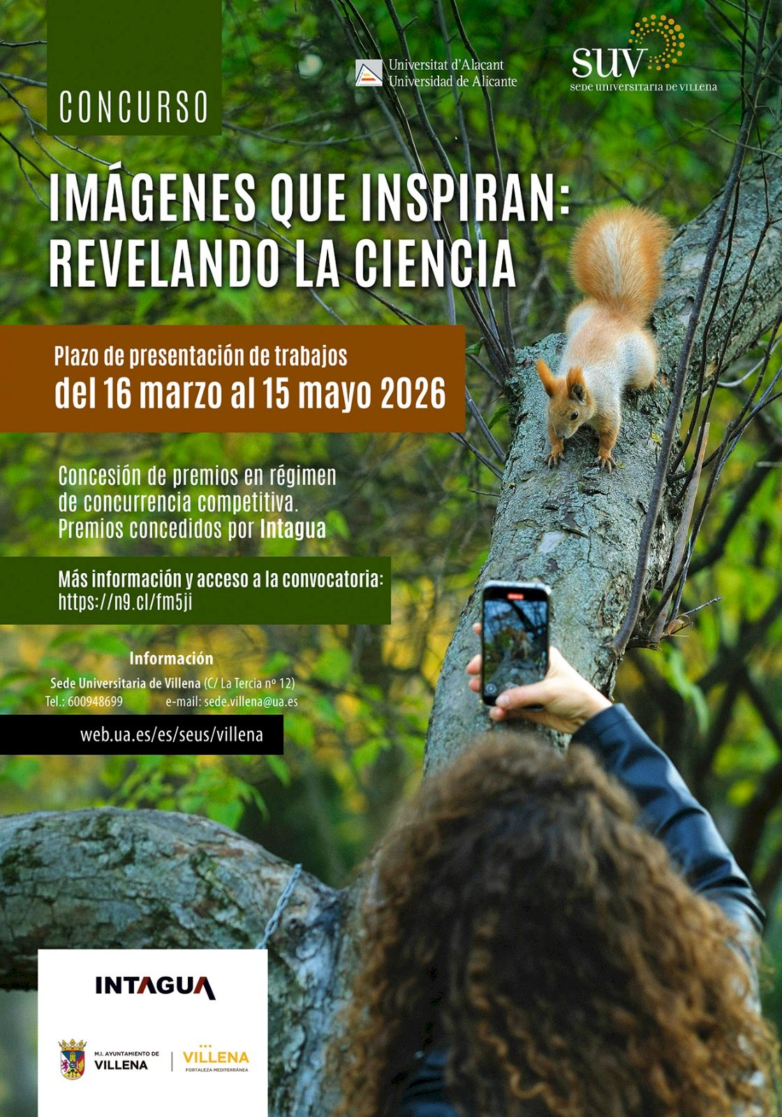 Por otro lado, la Sede también impulsa el concurso “Imágenes que inspiran: revelando la ciencia”, dirigido al alumnado de 4º de Educación Secundaria de los centros educativos de Villena. Esta propuesta busca acercar la ciencia al estudiantado a través de la fotografía, incentivando la observación, la curiosidad científica y la creatividad. Los participantes deberán presentar una imagen relacionada con fenómenos científicos, acompañada de un breve texto explicativo. Las obras seleccionadas formarán parte de una exposición pública, y se otorgarán diversos premios en material educativo, incluyendo un primer premio valorado en 170 euros.