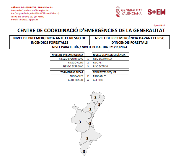 El Centro de Coordinación de Emergencias de la Generalitat Valenciana establece el Riesgo Extremo de incendio forestal
