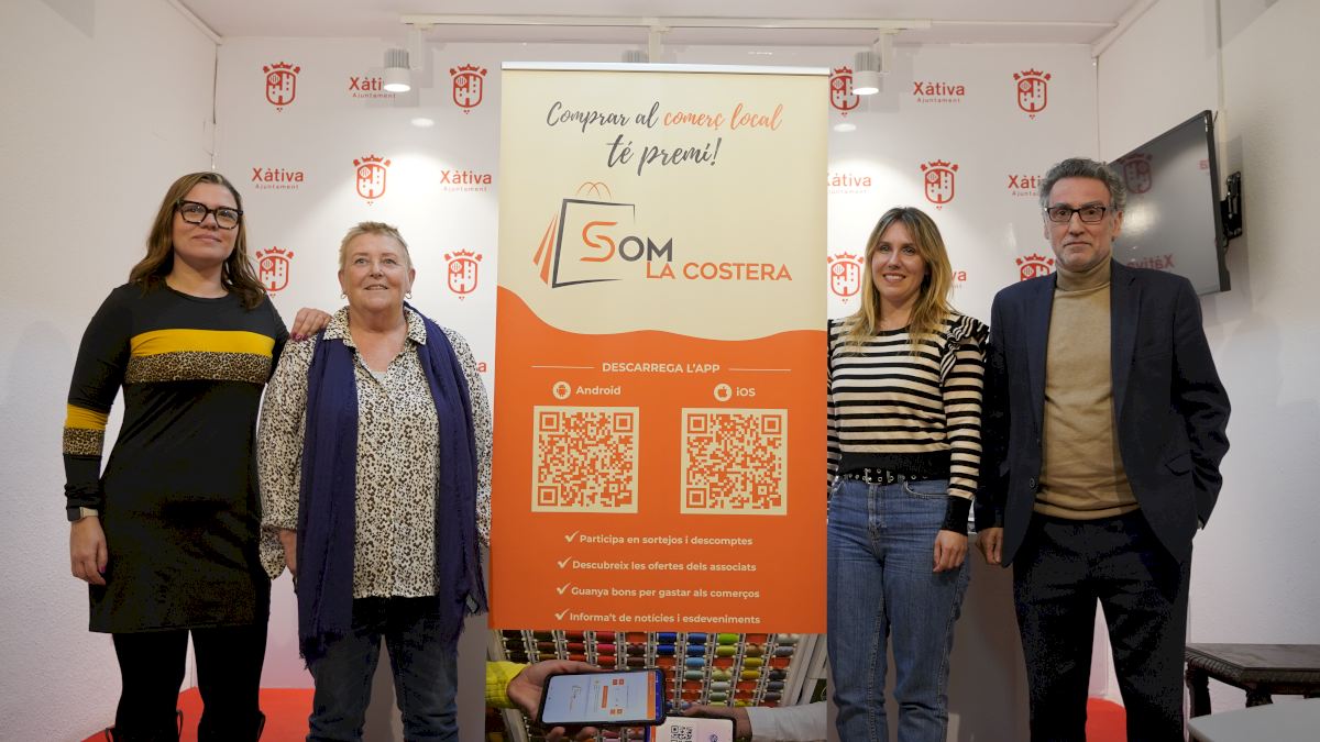 Este lunes se ha presentado en rueda de prensa la nueva APP promovida por la asociación de comerciantes Xàcex con la colaboración del Ayuntamiento de Xàtiva, la cual lleva por nombre «Som La Costera» y brinda al consumidor la oportunidad de encontrar ofertas exclusivas o de ganar premios. En el acto han participado la regidora de Promoción Económica Raquel Caballero, el presidente de Xàcex José Joaquín Calvo y la vicepresidenta Mila Soler.