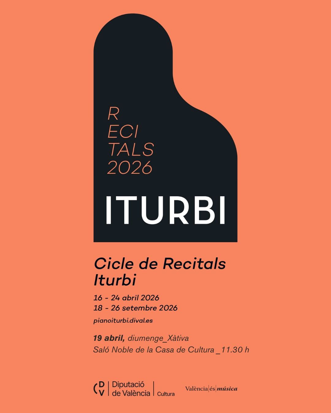 El Ayuntamiento de Xàtiva acogerá el próximo 19 de abril uno de los conciertos del Ciclo de Recitales Iturbi 2026, una iniciativa impulsada por la Diputación de Valencia que tiene como objetivo dar proyección a los jóvenes talentos ganadores del Concurso Internacional de Piano Iturbi.